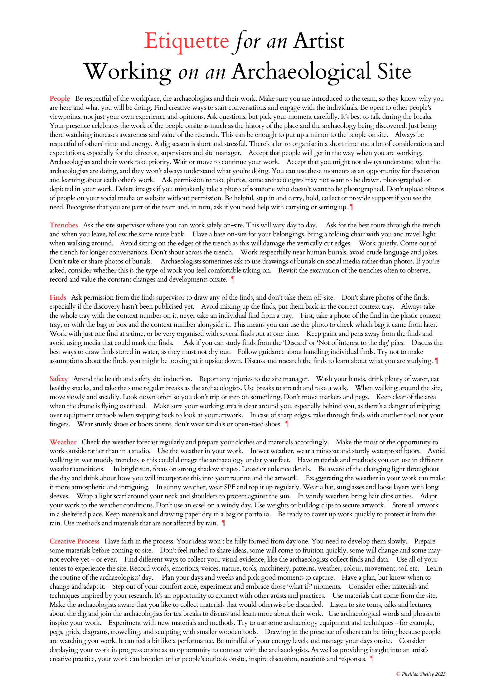 Etiquette for an Artist Working on an Archaeological Site